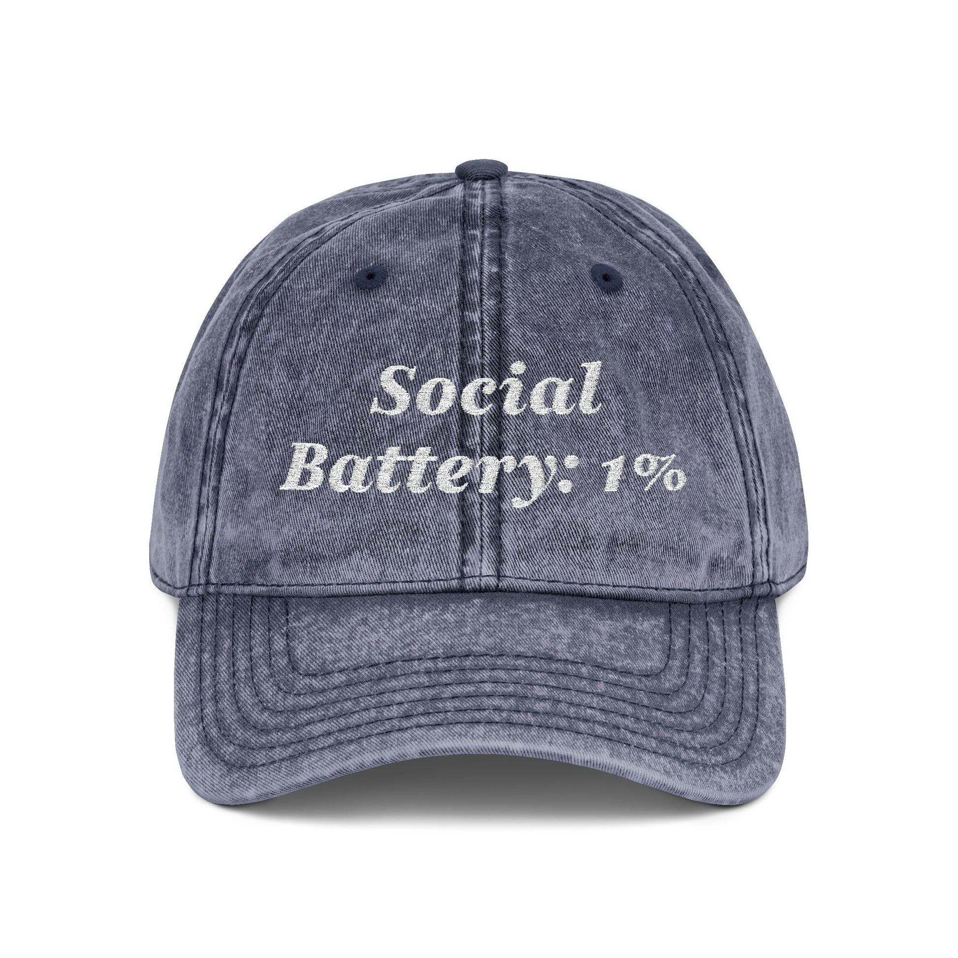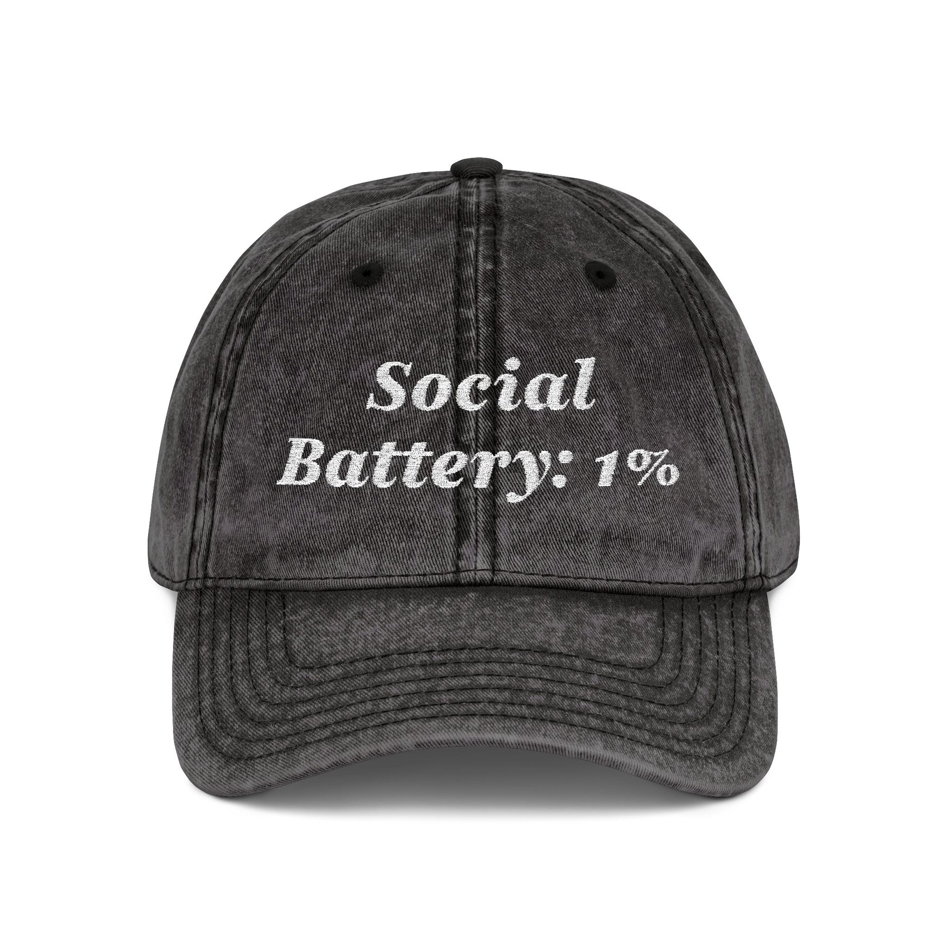 Social Battery 1% Hat Funny Introvert Personalized Text Embroidered Vintage Cap